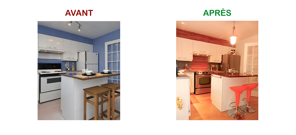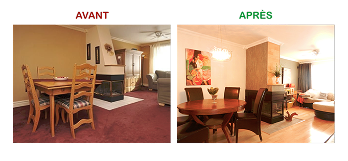 Il faut donc minimiser les irritants de ventes afin de couper court aux négociations possibles, et je mets mes idées à votre service afin de créer un coup de cœur avec un investissement raisonnable. Qu’on soit dans un contexte d’un marché d’acheteurs ou de vendeurs les avantages du Home Staging sont concrets pour être à l’avant des comparables et au meilleur prix possible…