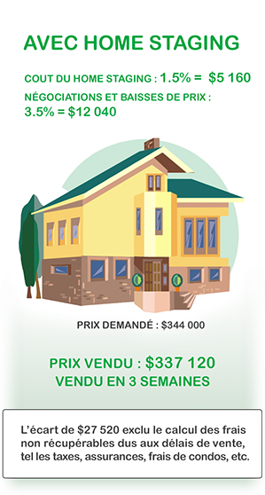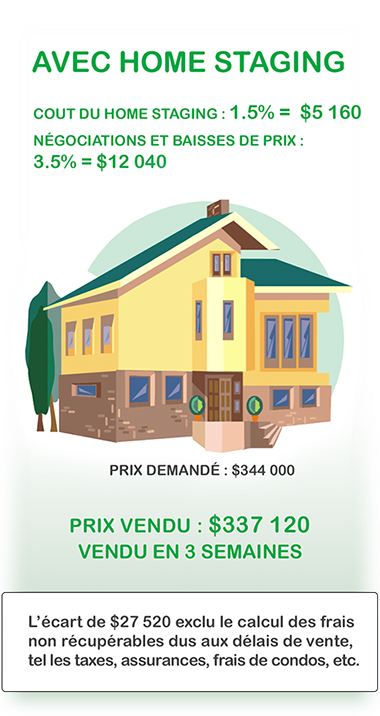 Le home Staging peut effectivement faire une différence sur le prix, la rapidité de vente ou le fait de rester en attente ou pas.